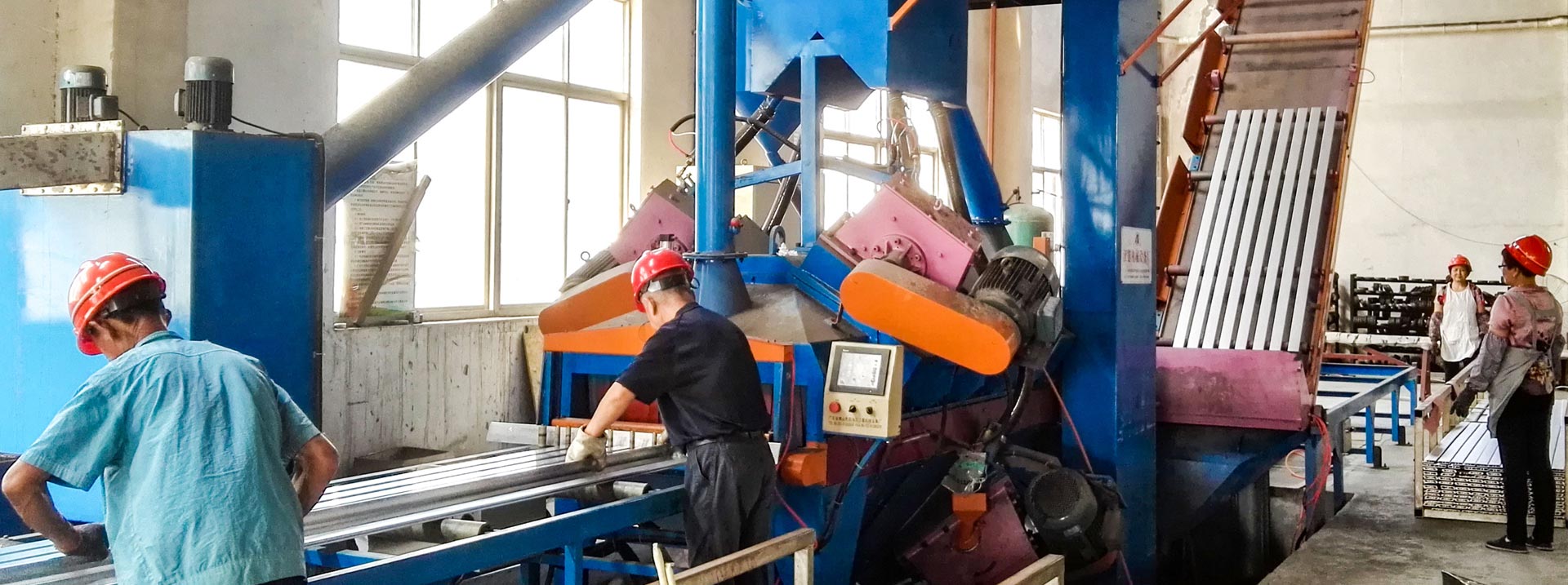 專業(yè)生產(chǎn)多種鋁合金型材及制品的企業(yè),已有二十多年的經(jīng)驗和歷史。現(xiàn)有鋁型材擠壓設備四套,分別為1800T、1000T、630T、600T擠壓生產(chǎn)配套設備有10m長不銹拋丸機。6m鋁型材表面拋光機,4.5m普拉迪鋁材加工中心,多臺高精度自動切割機,雙頭轉(zhuǎn)向切割機,備有12m長時效爐。